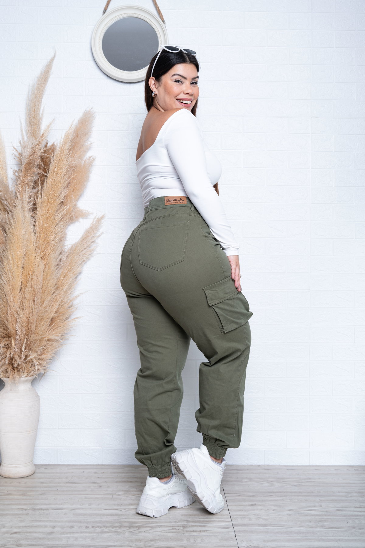 Jogger Gabardina Verde Cargo Elastizado