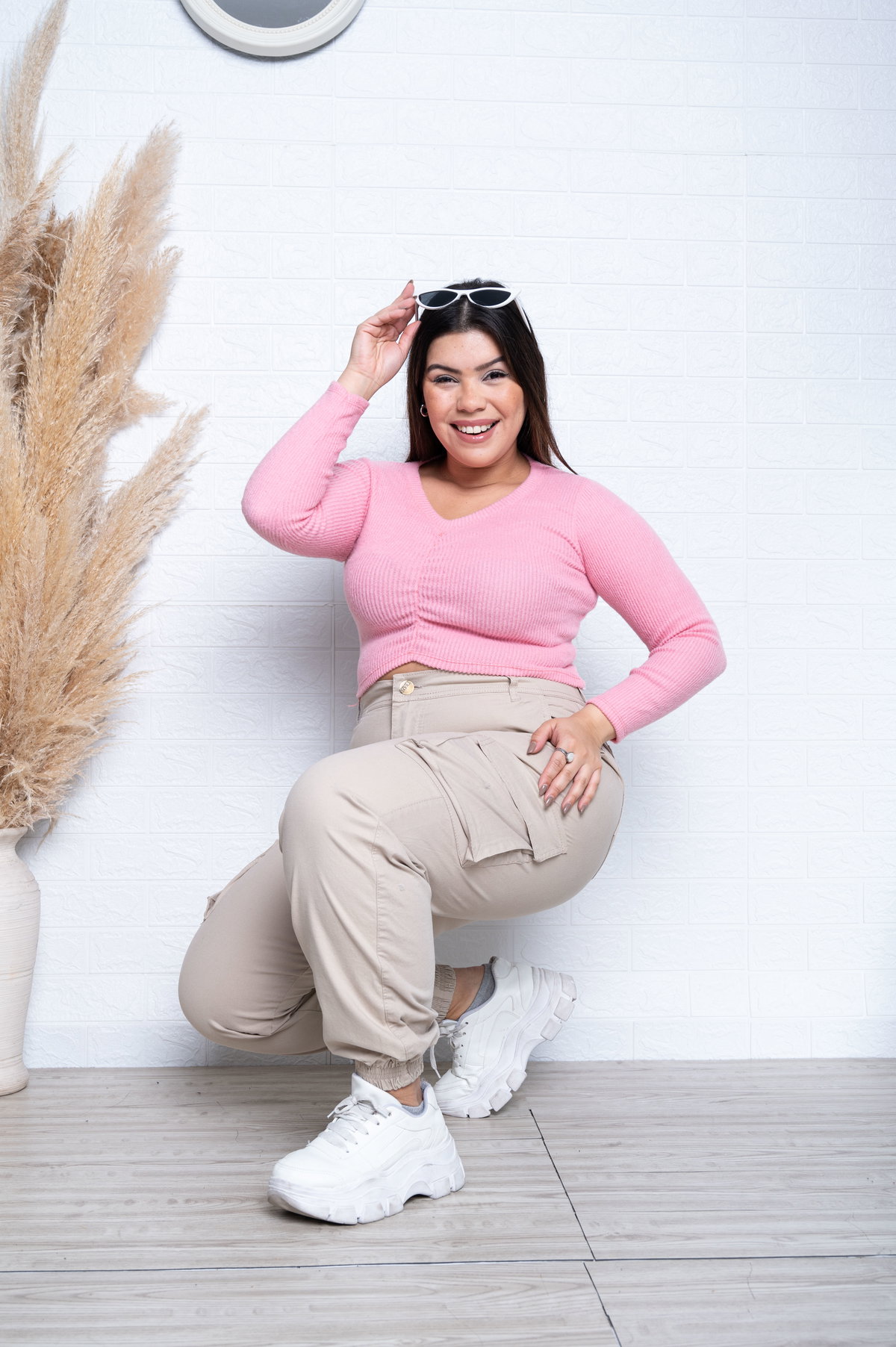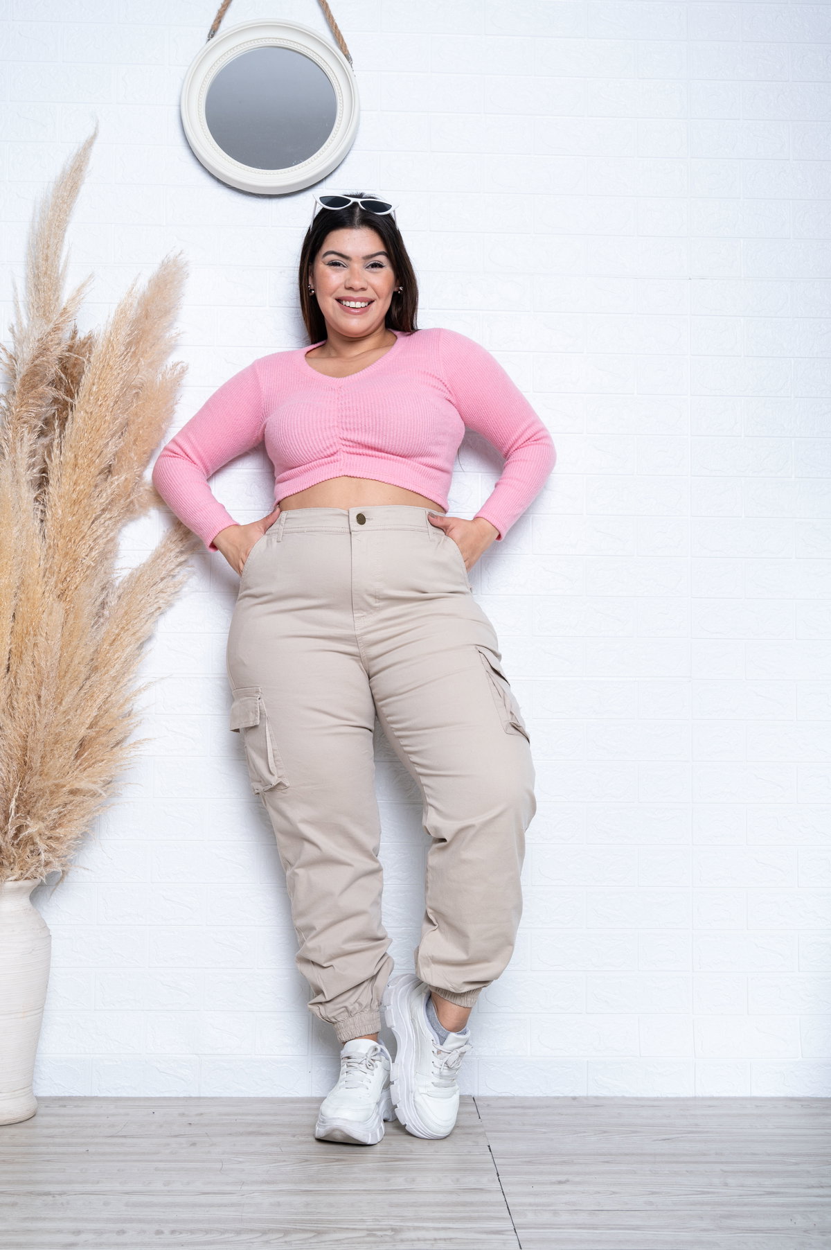 Jogger Gabardina Beige Cargo Elastizado ESP