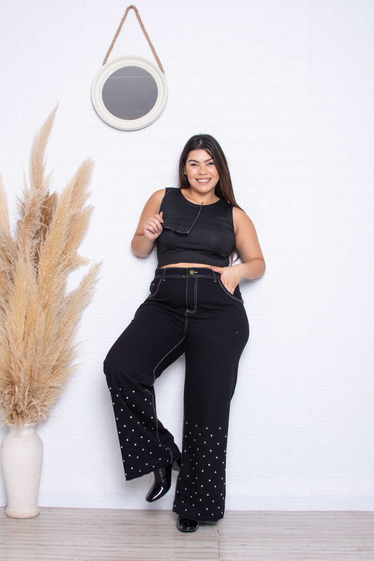 Wideleg Negro Hilo Blanco c/Tachas Rígido