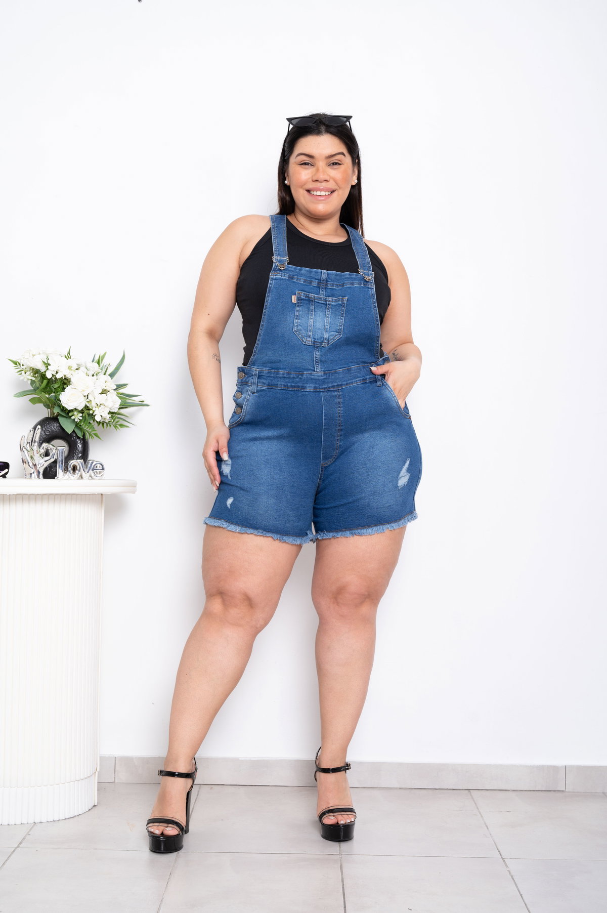 Short Jardinero Azul Roturas Elastizado