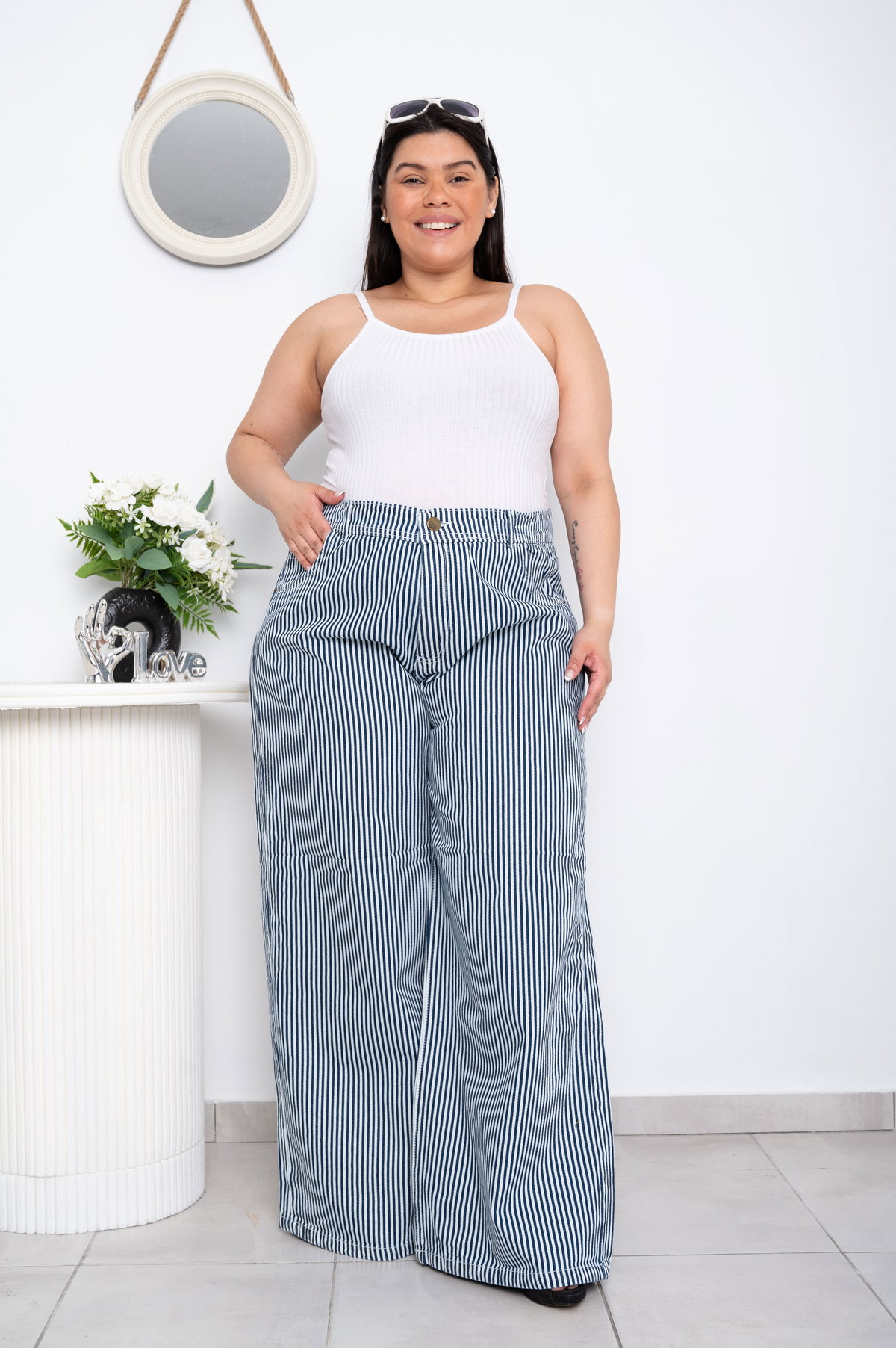 Wideleg Blanco Rayado Rígido