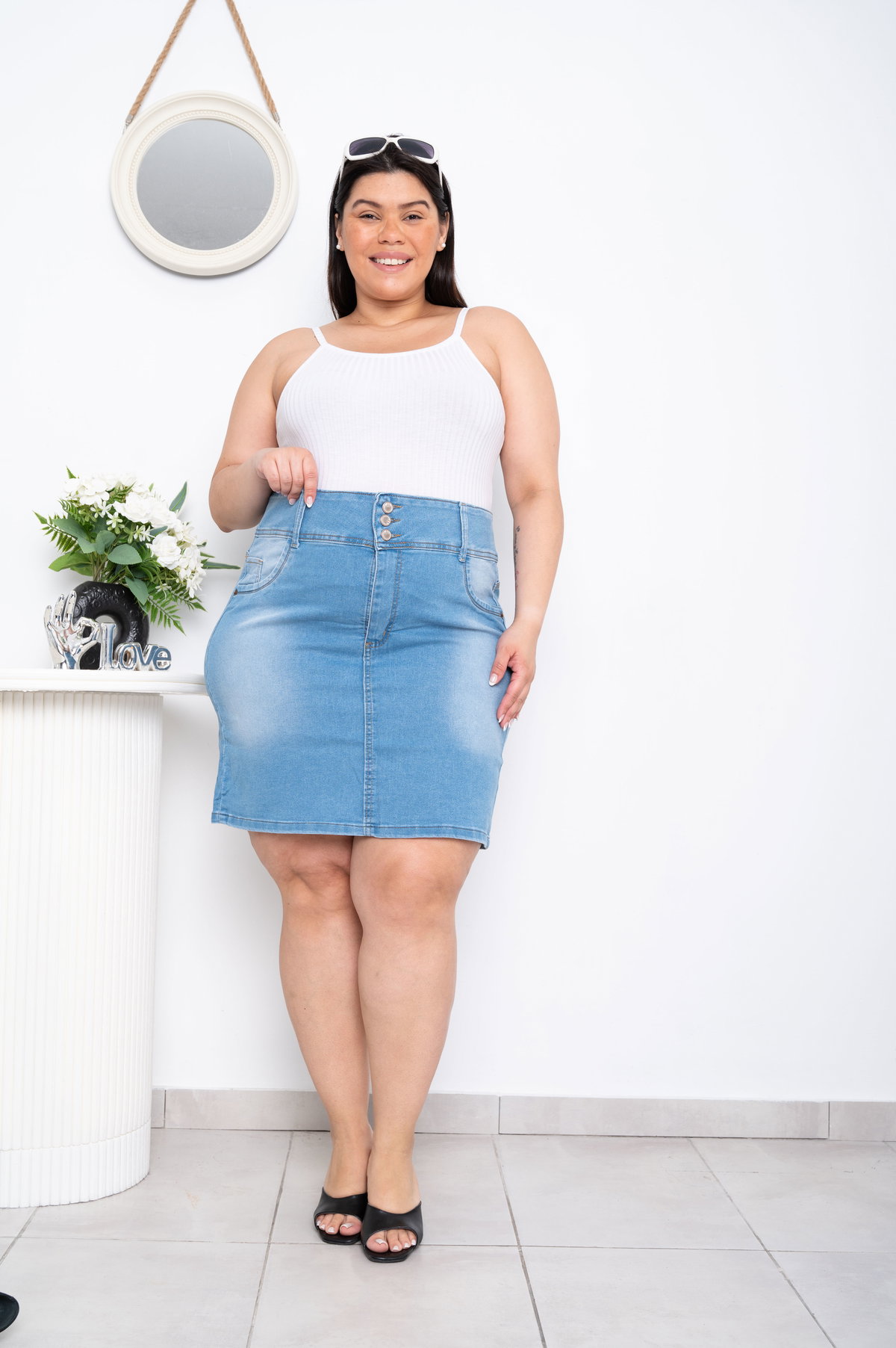 Pollera Celeste 3 Botones Elastizado