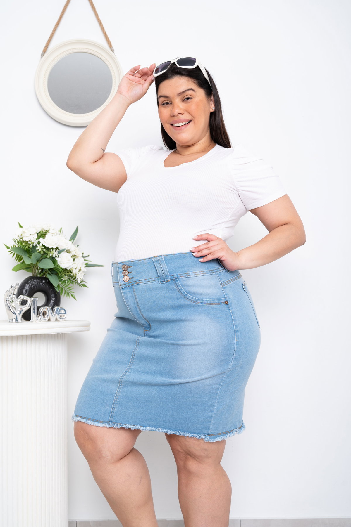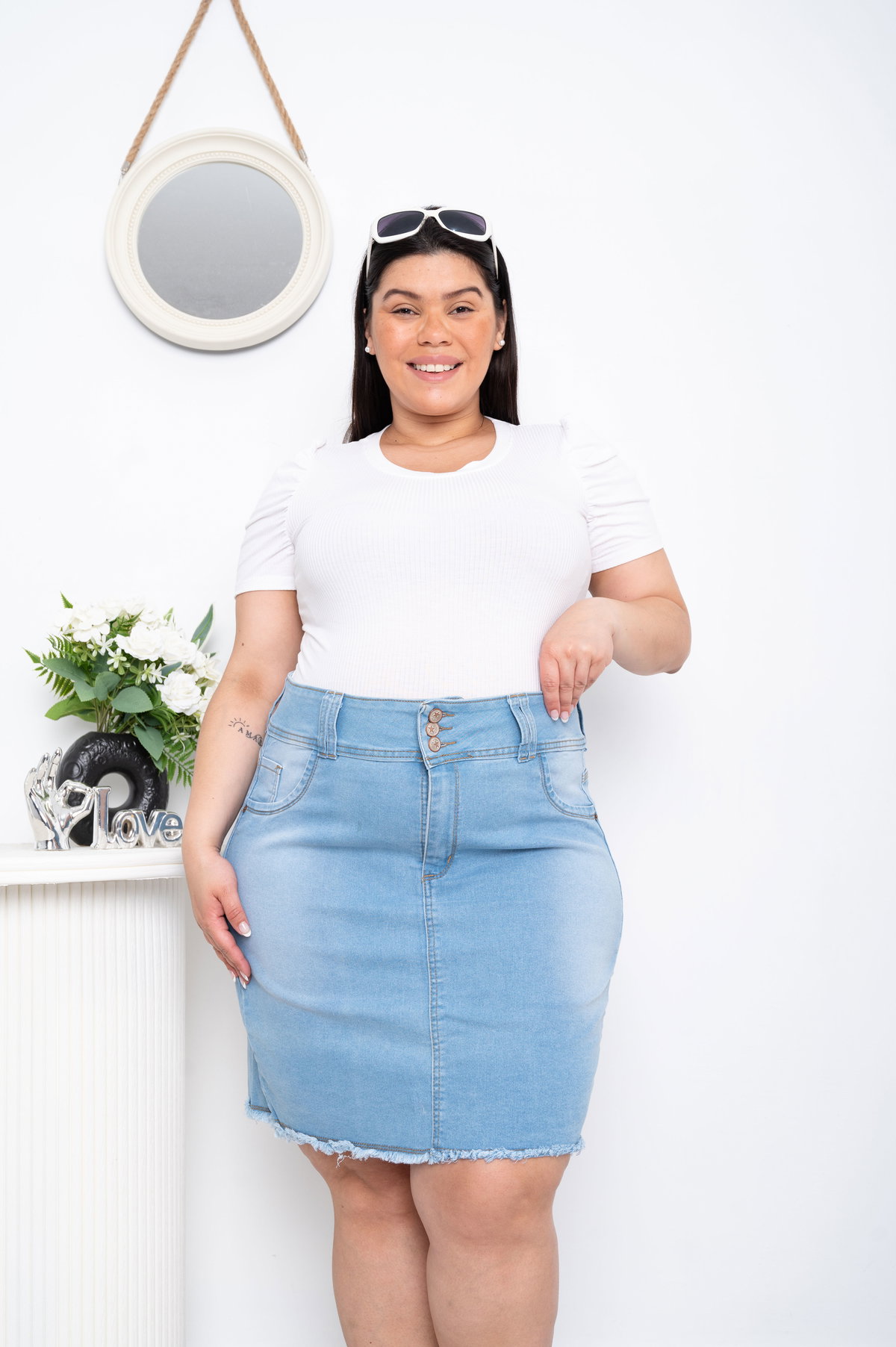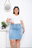 Pollera Celeste 3 Botones c/Flecos Elastizado