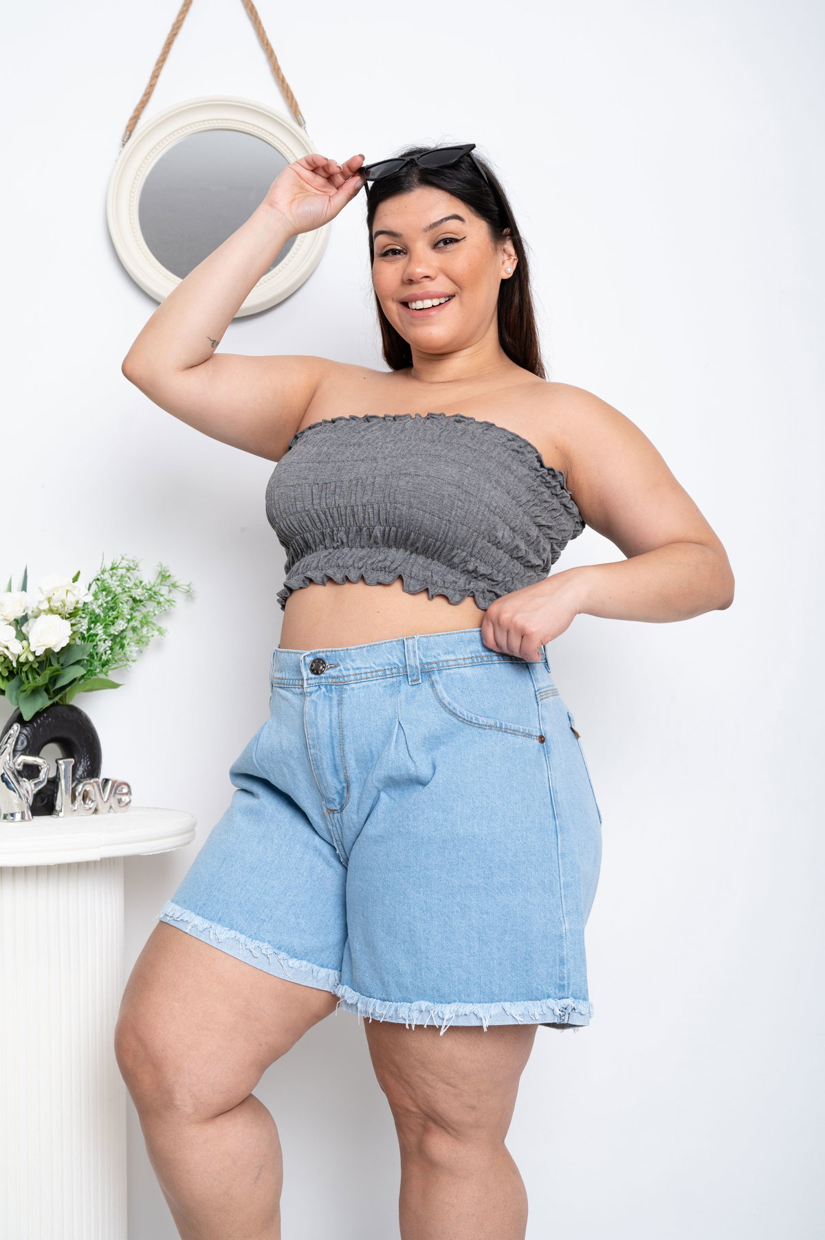 Short Mom Celeste Liso Rígido ESP