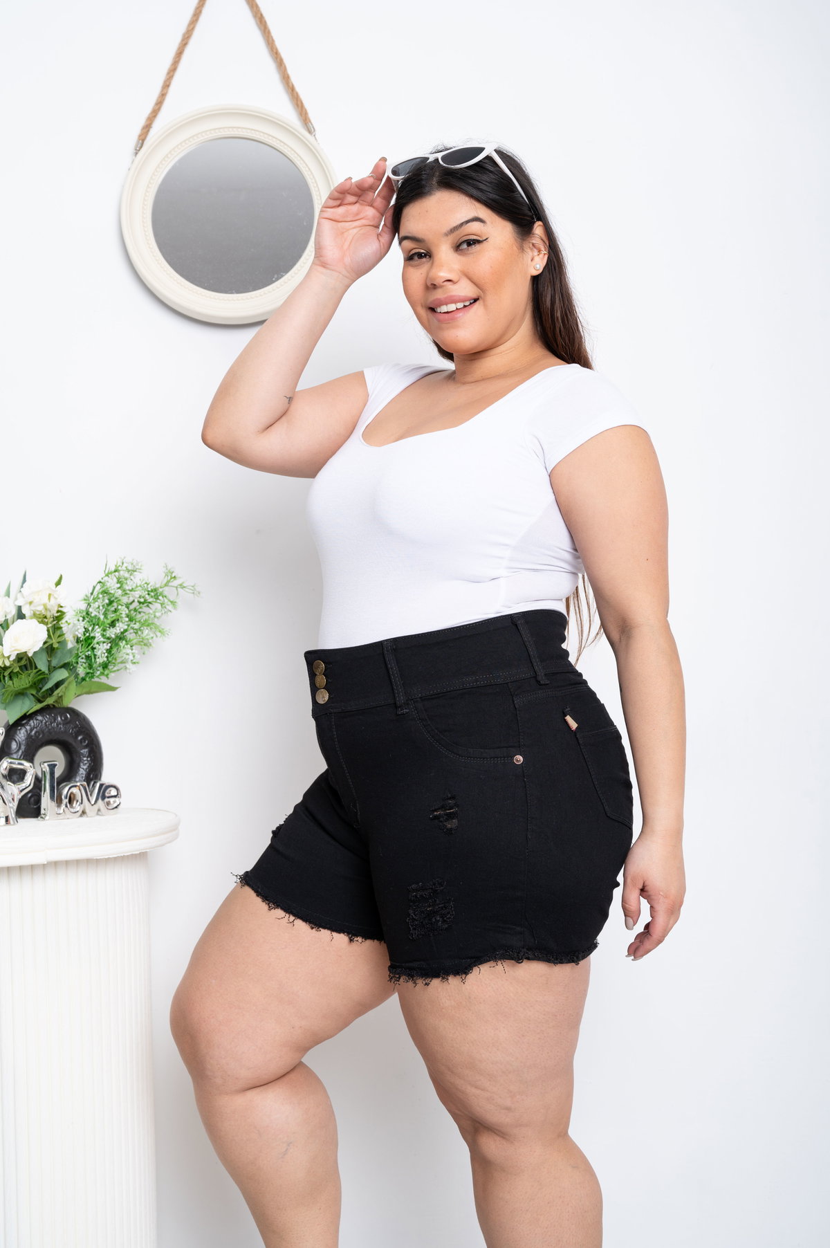 Short Negro 3 Botones Roturas Elastizado