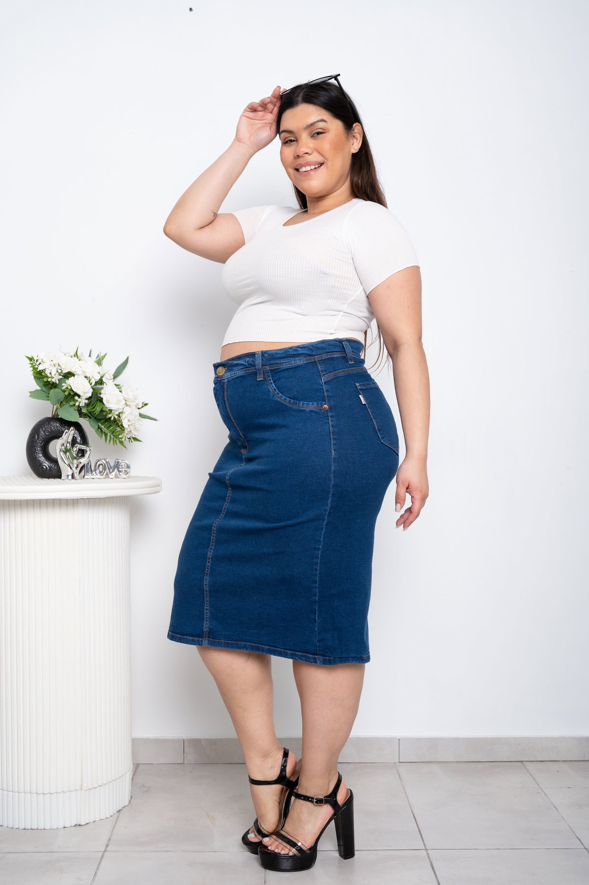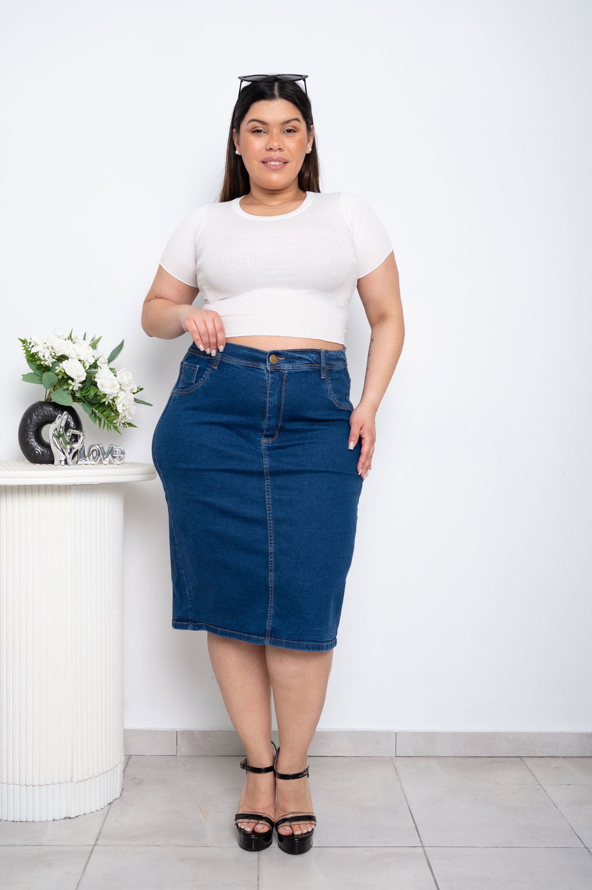 Pollera Larga Azul Elastizado