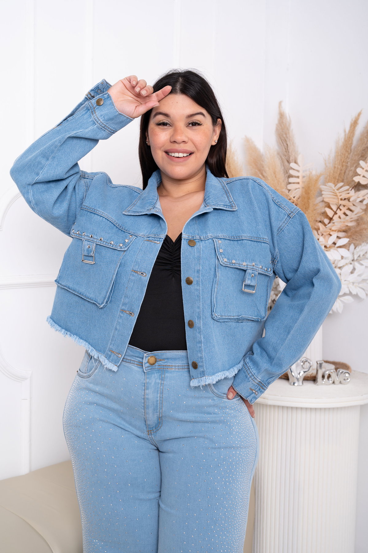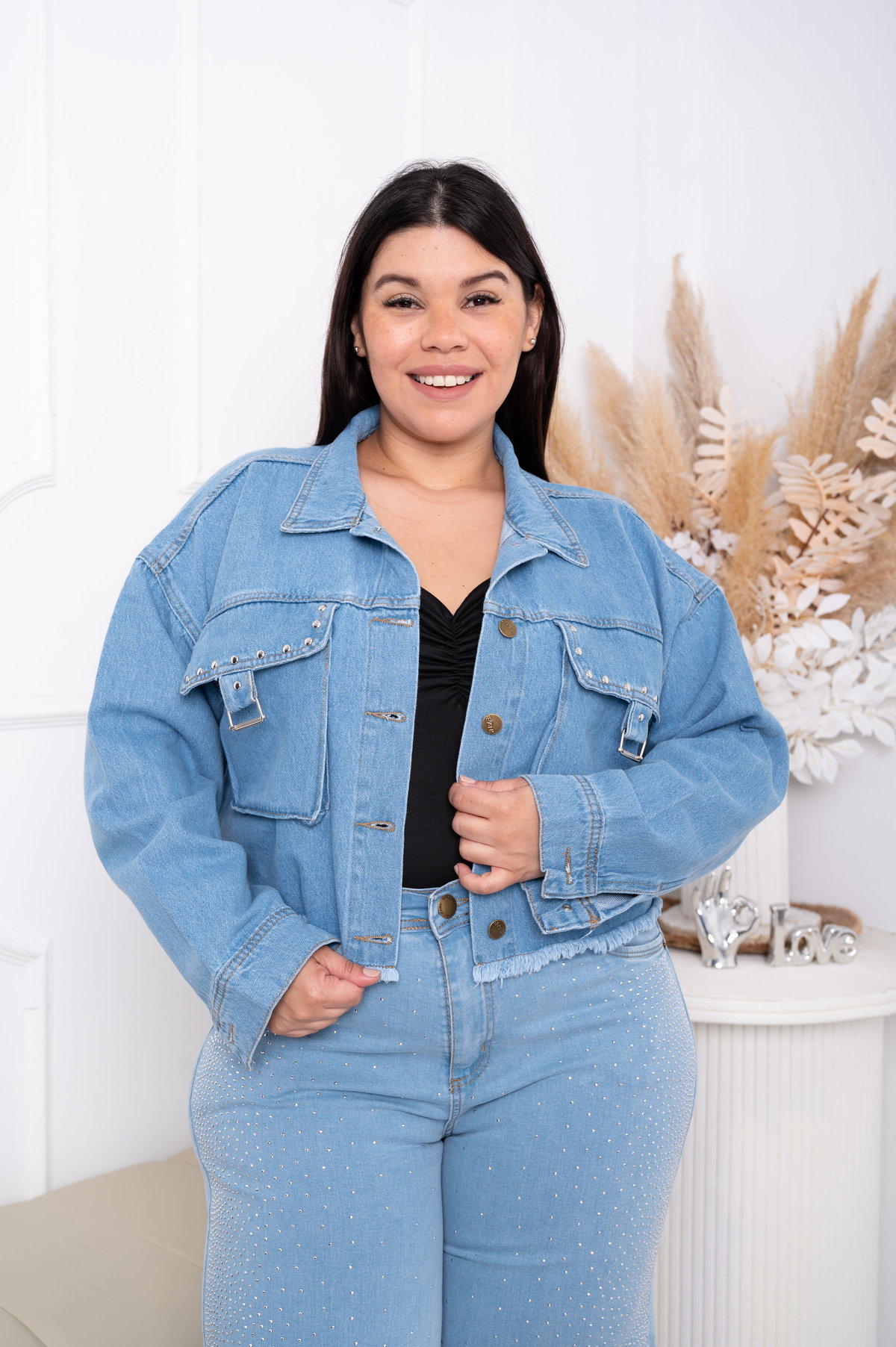 Campera Mom Celeste c/Tachas Rígido