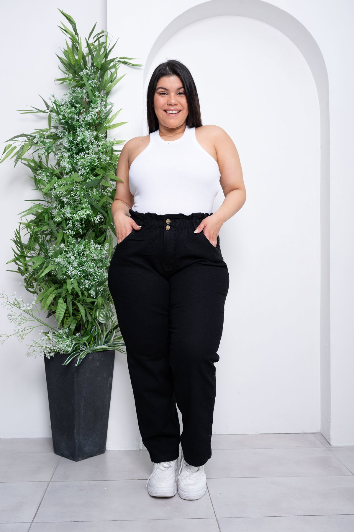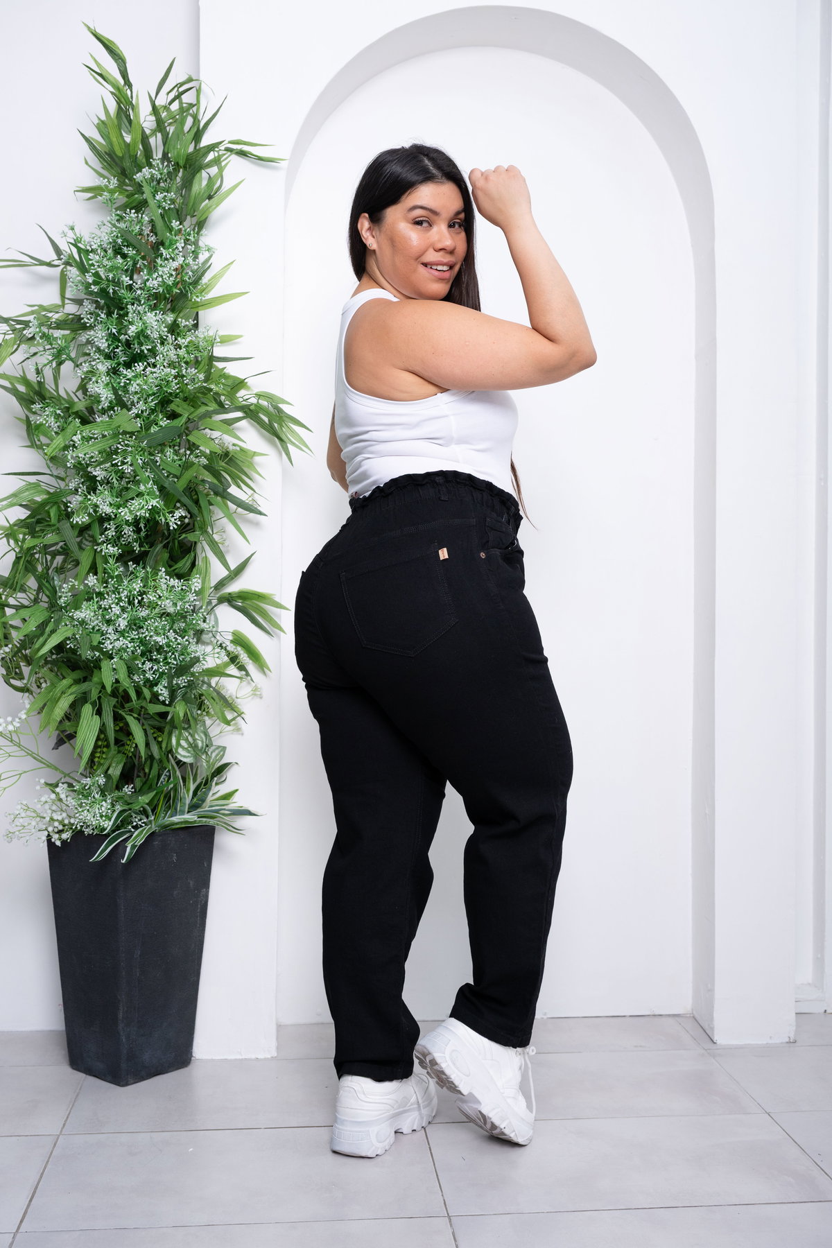 Recto Negro Cintura Ancha c/Elástico Elastizado
