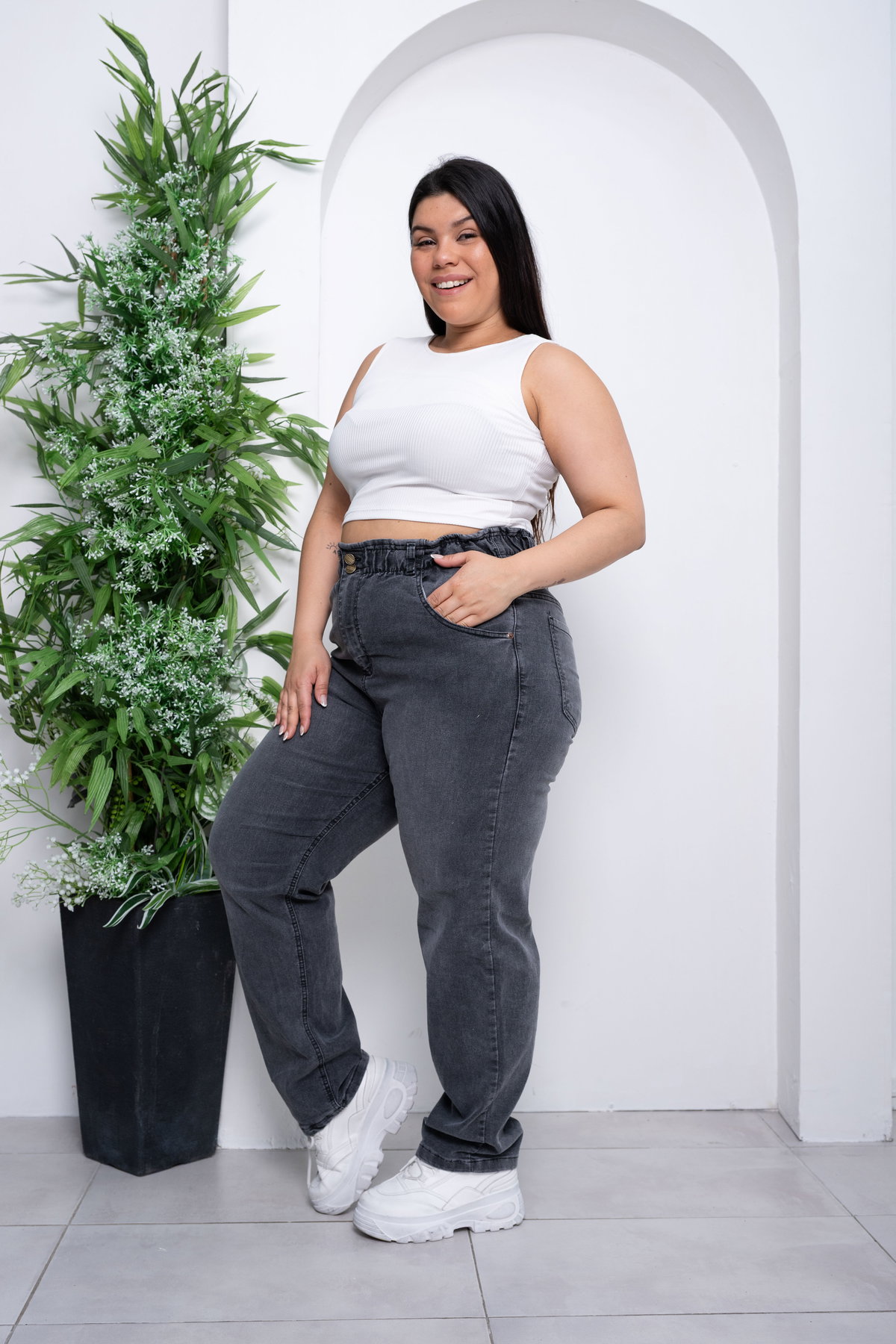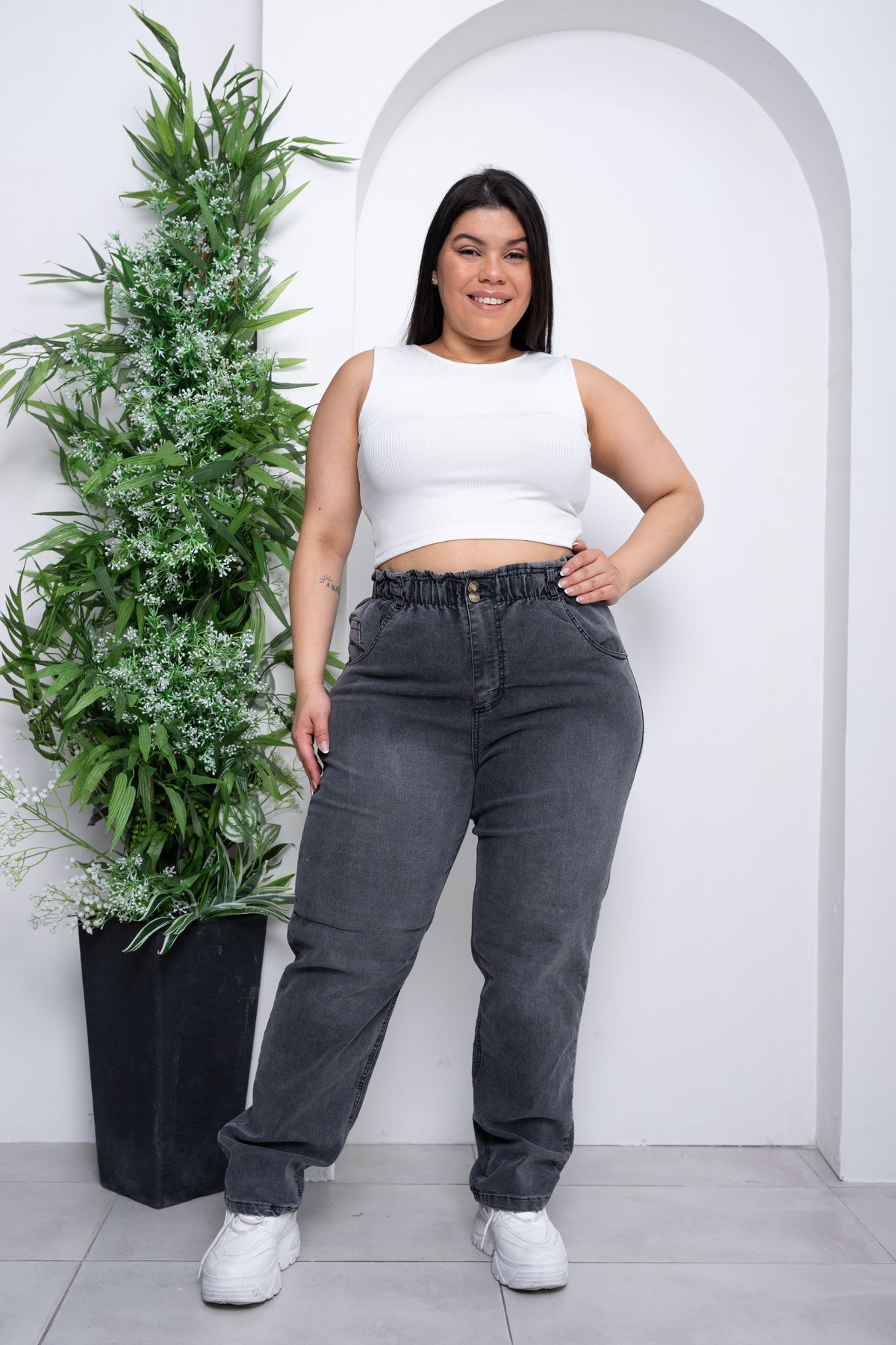 Recto Gris Cintura Ancha c/Elástico Elastizado