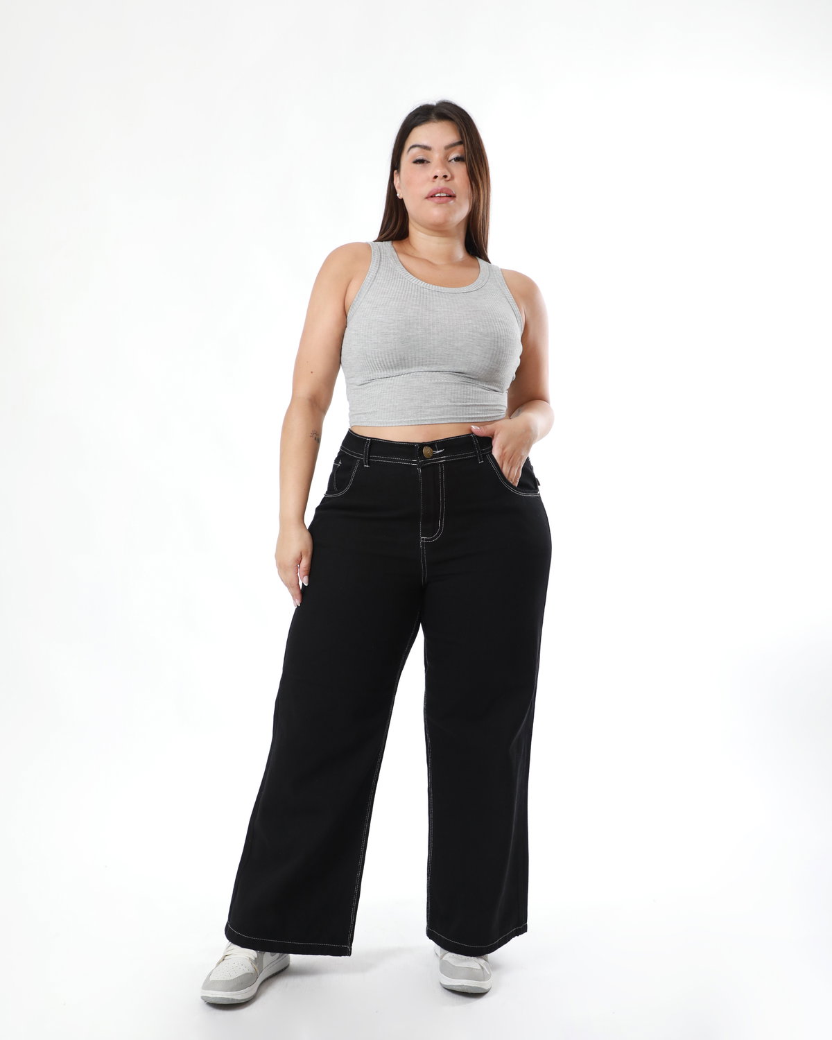 Wideleg Negro Hilo Blanco Rígido