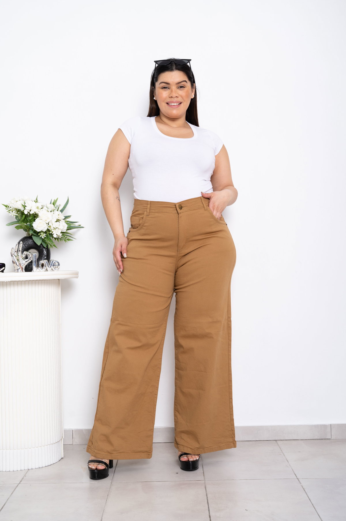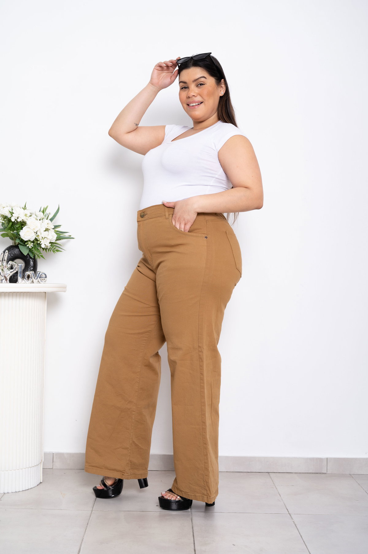 Wideleg Gabardina Camel Elastizado ESP