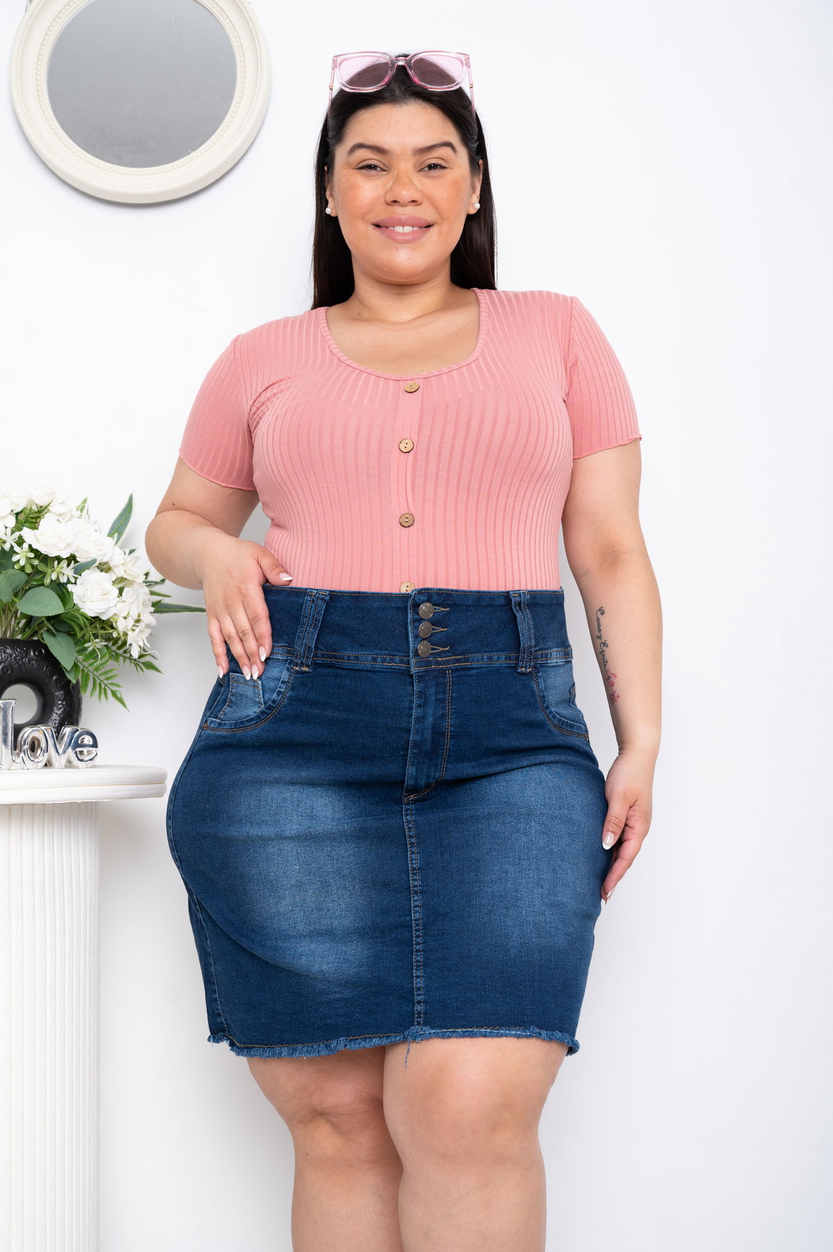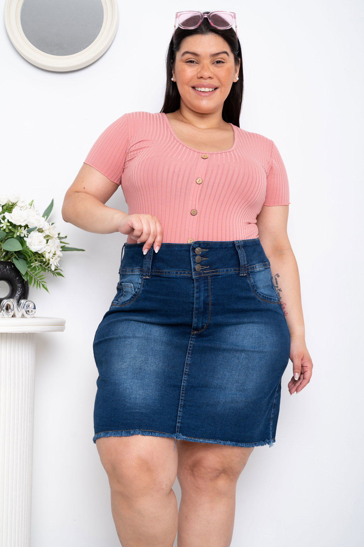 Pollera Azul 3 Botones c/Flecos Elastizado