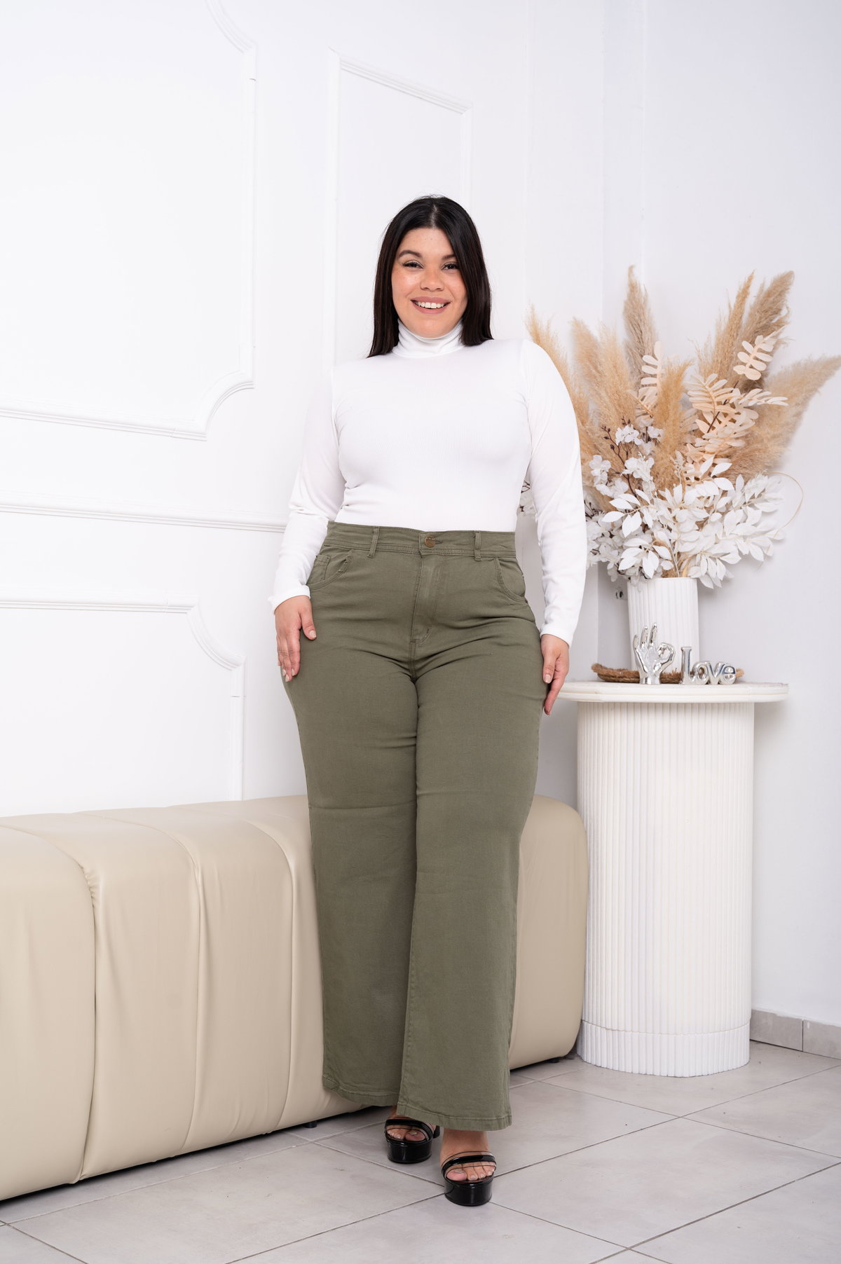 Wideleg Gabardina Verde Elastizado ESP