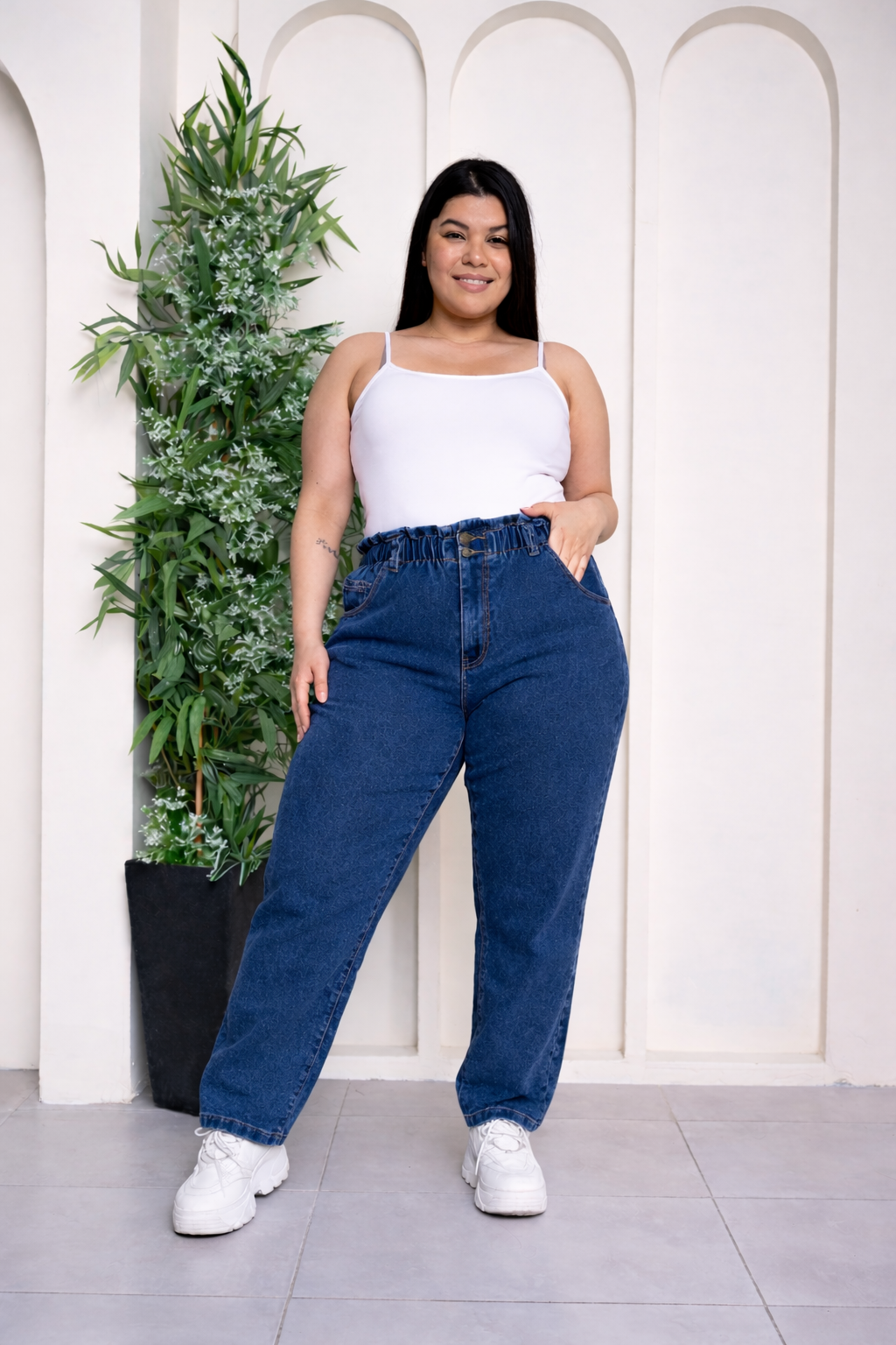 Recto Azul Cintura Ancha c/Elástico Elastizado ESP